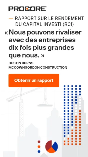 Procore est l’un des principaux fournisseurs d’applications basées sur le nuage pour la construction. Procore connecte votre équipe, vos applications et vos appareils via une plateforme unifiée pour aider les professionnels de la construction à gérer les risques et à réaliser des projets de qualité, en toute sécurité, dans les délais et dans les limites du budget. De l’appel d’offres à la clôture, collaborez en temps réel avec toutes vos équipes, sur n’importe quel appareil.